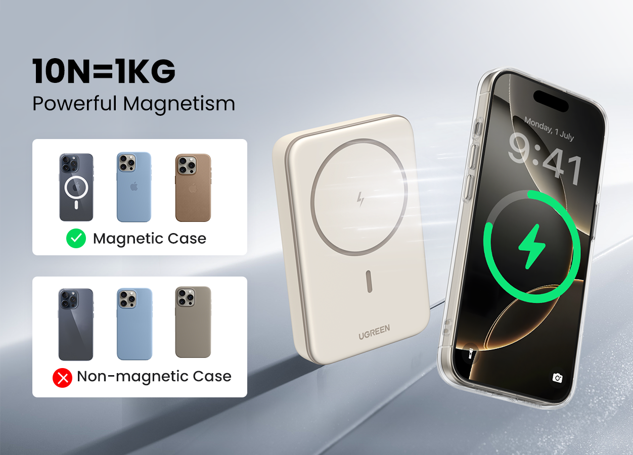 UGREEN MagFlow Magnetic Wireless Power Bank (10000mAh, Qi2 25W, MagSafe-compatible)