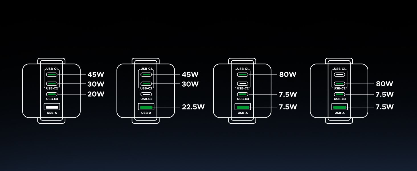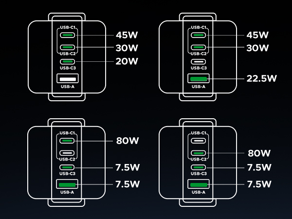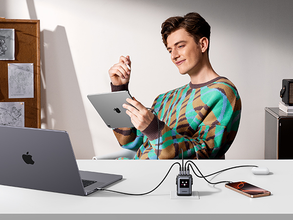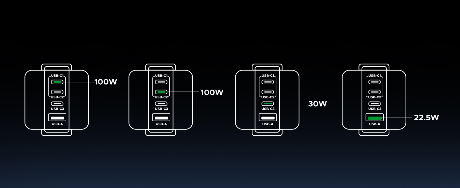 • 【4 USB Ports, More Choices】With 3 USB C ports and 1 USB A port, fast charging three of your devices with an intelligent current distribution system. Just power up your MacBook, iPhone, and AirPods all at the same time!