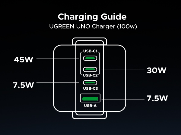 • 【100W Chargring, More Powerful and Faster】With the PD3.0 protocol, the 100W UGREEN UNO GaN Type C charger fast power your MacBook Air M2 from 0 to 55% in just 30 mins with single USB-C1 port.