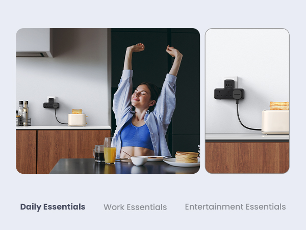- 【3 AC Outlets Extension, Ideal for Daily Necessities】Plug into a power outlet socket and you will get 3 AC outlets with 2990W, this outlet extender supports 3 electrical devices charging simultaneously, which can meet your most needs of home entertainment, working center, and kitchen appliances, etc.