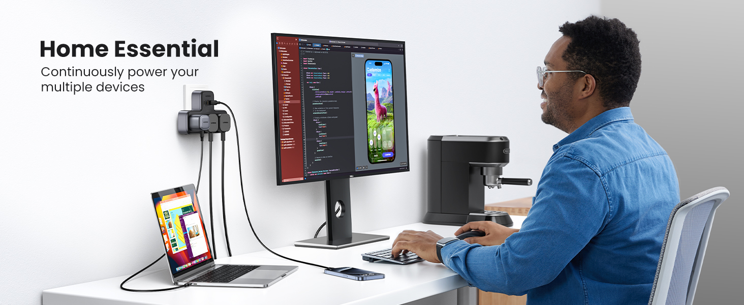 - 【3 USB Ports, PD30W Fast USB C Charger】: UGREEN Power Strip design with 2 USB A and 1 USB C port, which can meet various USB devices, and the USB C port provides 30W output high-speed for your iPhone 15. With intelligent technology, this USB extension plug can auto-detect charged devices and dynamically distribute current, making your charging life easier and more convenient.