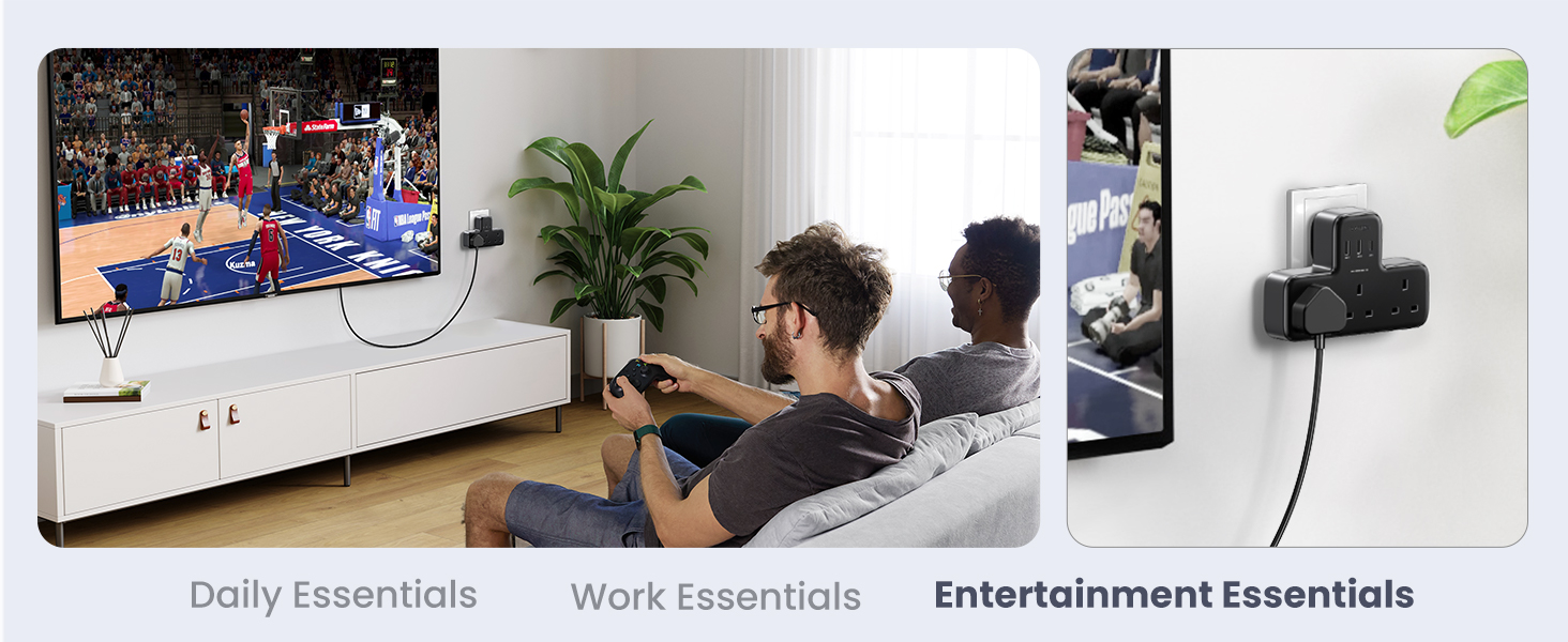 - 【Less Space, More Freedom】: With 16.6 x 11 x 3.8 cm compact size and cable-free design, solve the problem of needing an extension with untidy wires, just simply tap the UK adaptor plug into the wall, ideal for limited wall socket but multiple devices at the same time, a must-have electrical outlet for home office desk accessories.
