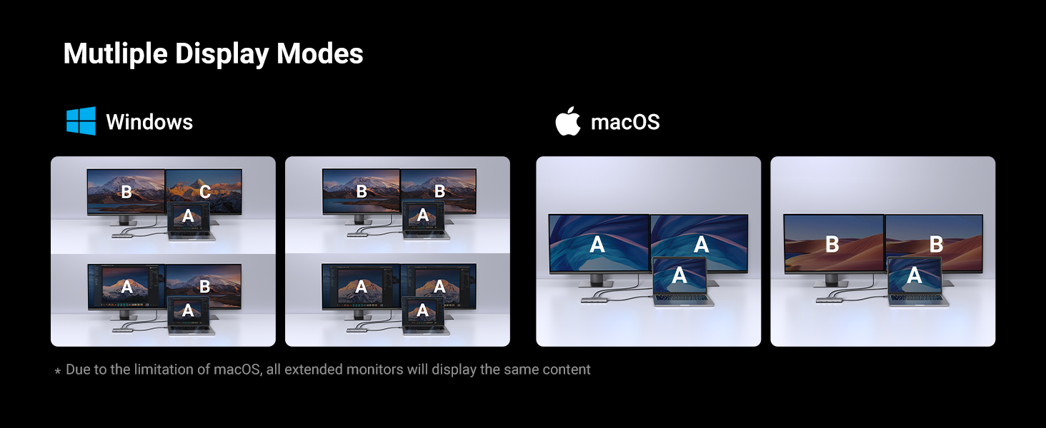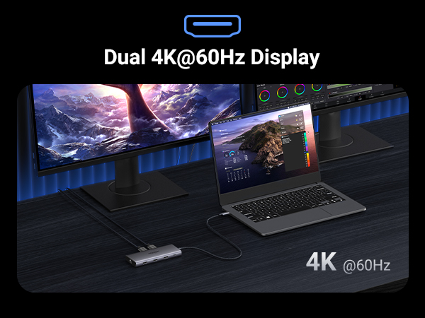 - 【Multi-Monitor Display】The Docking Station will hook up two displays to both HDMI ports in 4K@60Hz max. Connect to a single display via the HDMI 2 to view content in up to 8K@30Hz.