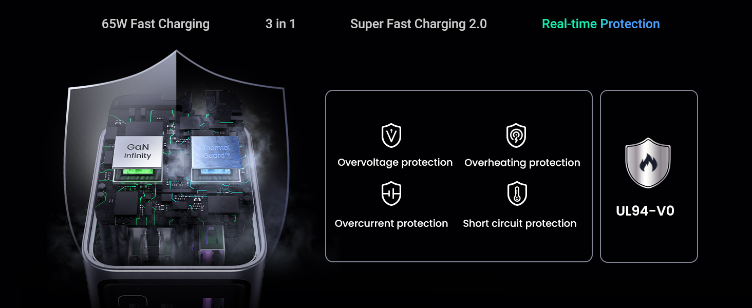 • 【GaNInfinity Chip, Upgraded GaN II Technology】A new generation of GaN II technology brings you a more powerful charging experience. Fantastic efficiency with less heat generation and a much smaller and lightweight design