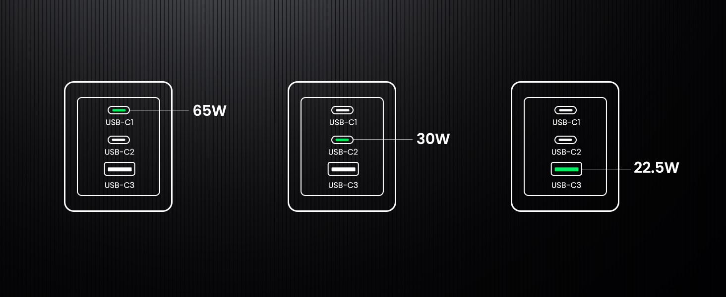 • 【Max 65W Output, Ultra-Fast Charging】USB C1 port provides full massive 65W power for your laptop when used alone, It only takes 30 minutes to charge MacBook Air M2 from 0% to 51%