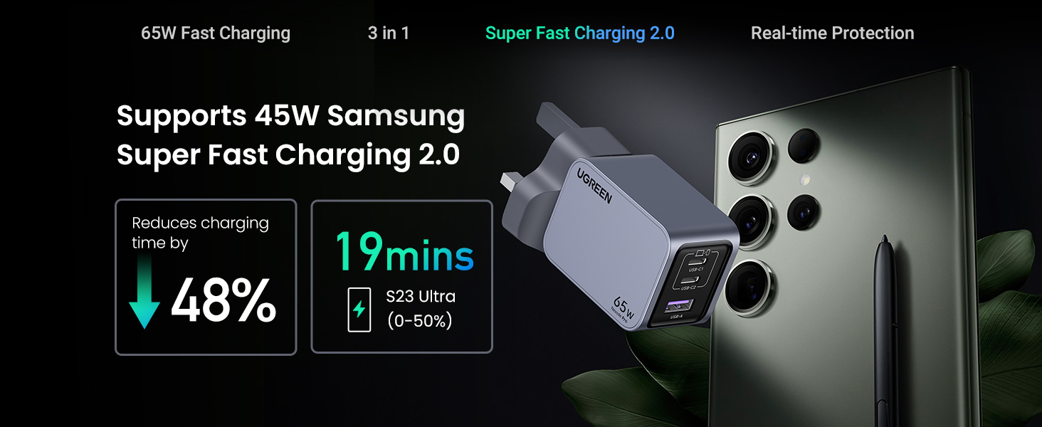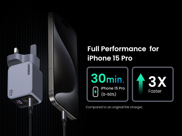 • 【Energy Saving, Environmental Friendly】UGREEN Nexode Pro 65W USB C charger enjoys the innovative Hybrid Power Solution, which increases the power conversion rate to 95%, and provides industry-leading efficiency to avoid wasting energy and be more environmental.