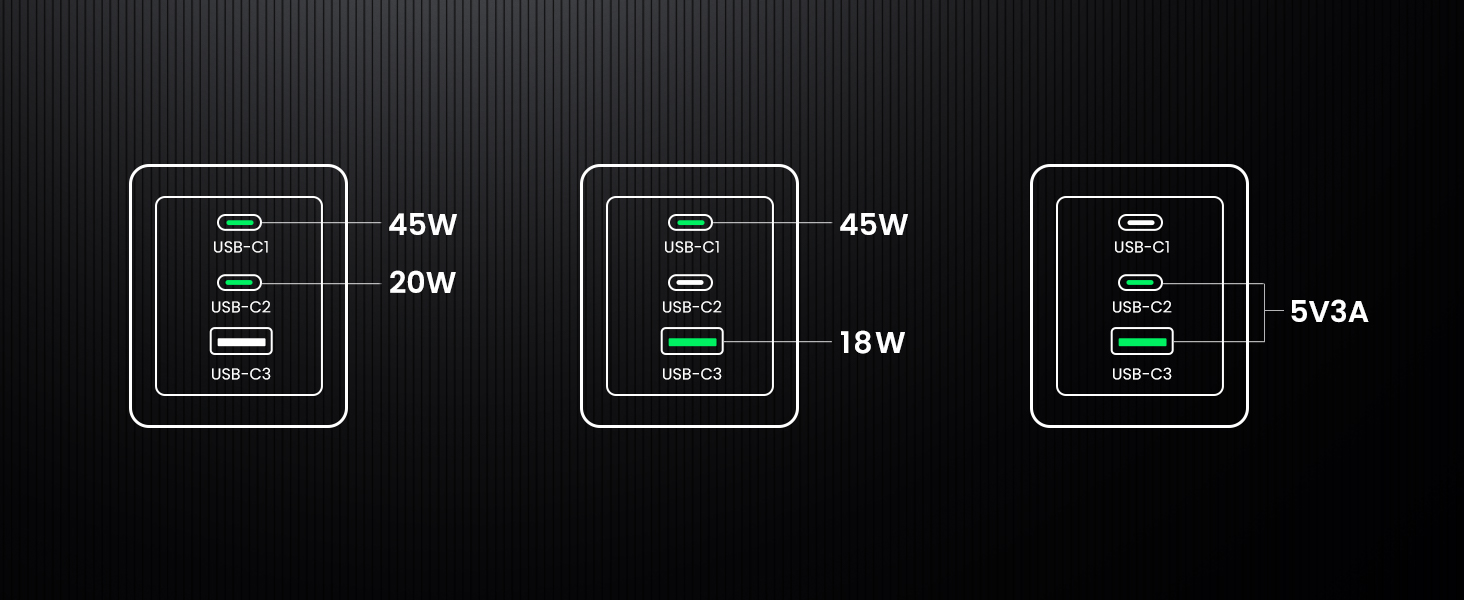 • 【3 in 1 Smart Charging, Power 3 Devices at Once】With 2 USB-C ports and 1 USB A port, fast charging three of your devices with an intelligent current distribution system. Just power up your MacBook, iPhone, and AirPods all at the same time!