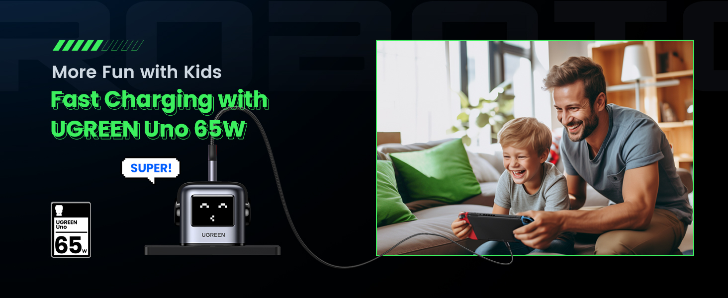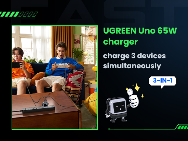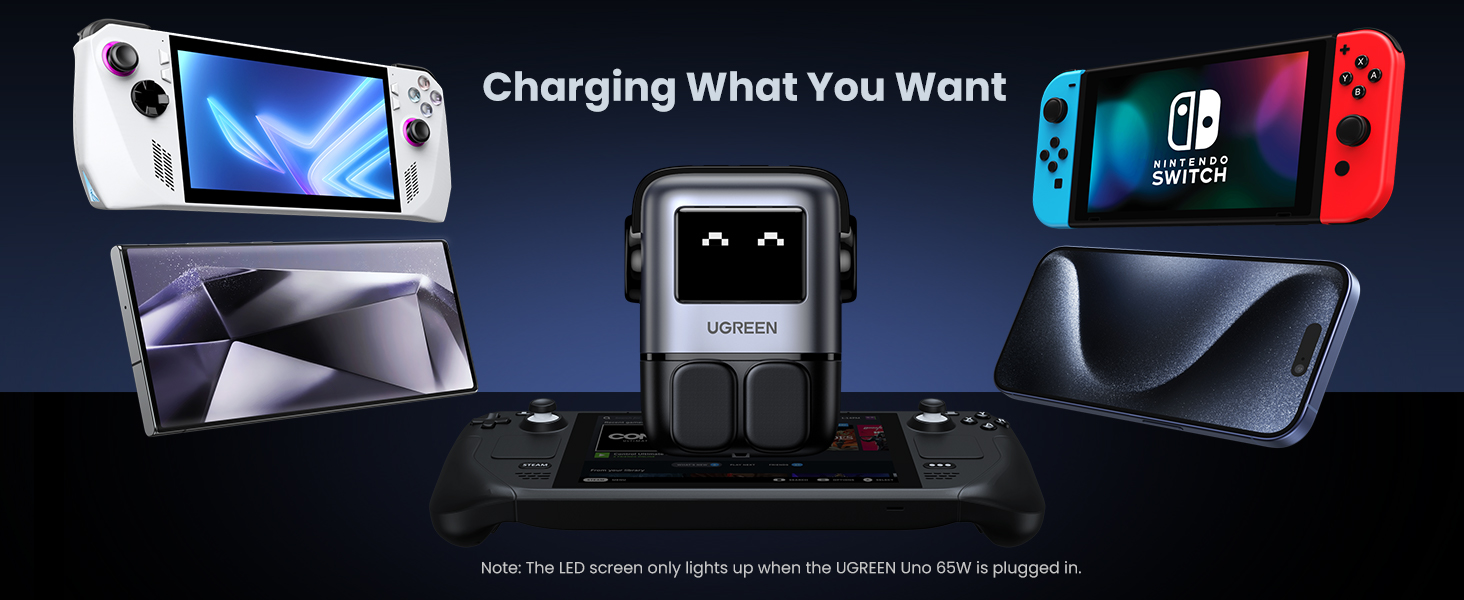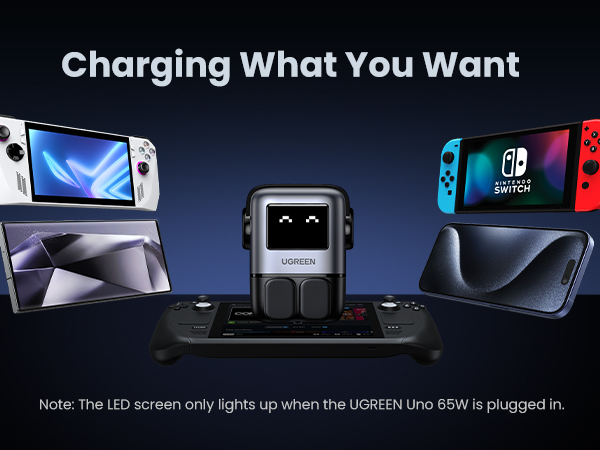 - 【Latest 65W GaN Charger】Introducing our futuristic and adorable "UGREEN UNO GaN" 65W USB C charger, this mini robot-shaped charger combines functionality with playful, making it an ideal accessory for all your charging needs.
