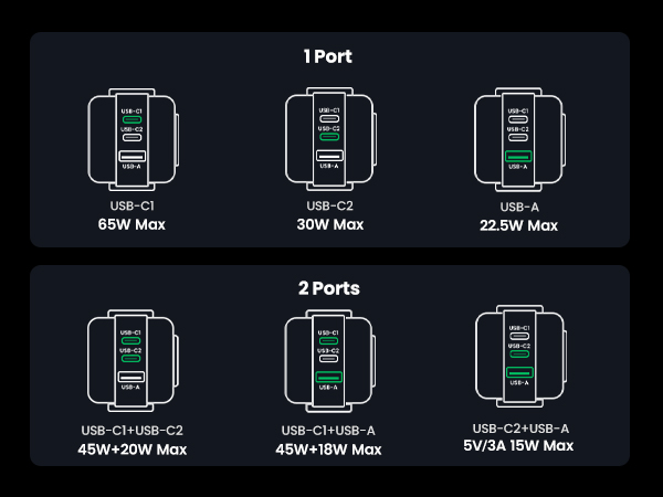 - 【3 USB Ports, More Choices】With 2 USB C ports and 1 USB A port, fast charging three of your devices with an intelligent current distribution system. Just power up your MacBook, iPhone 17, and AirPods all at the same time!