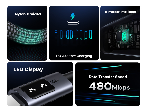 | Special features | Braided, Data Transfer, Fast Charging, High Speed, LED Display |