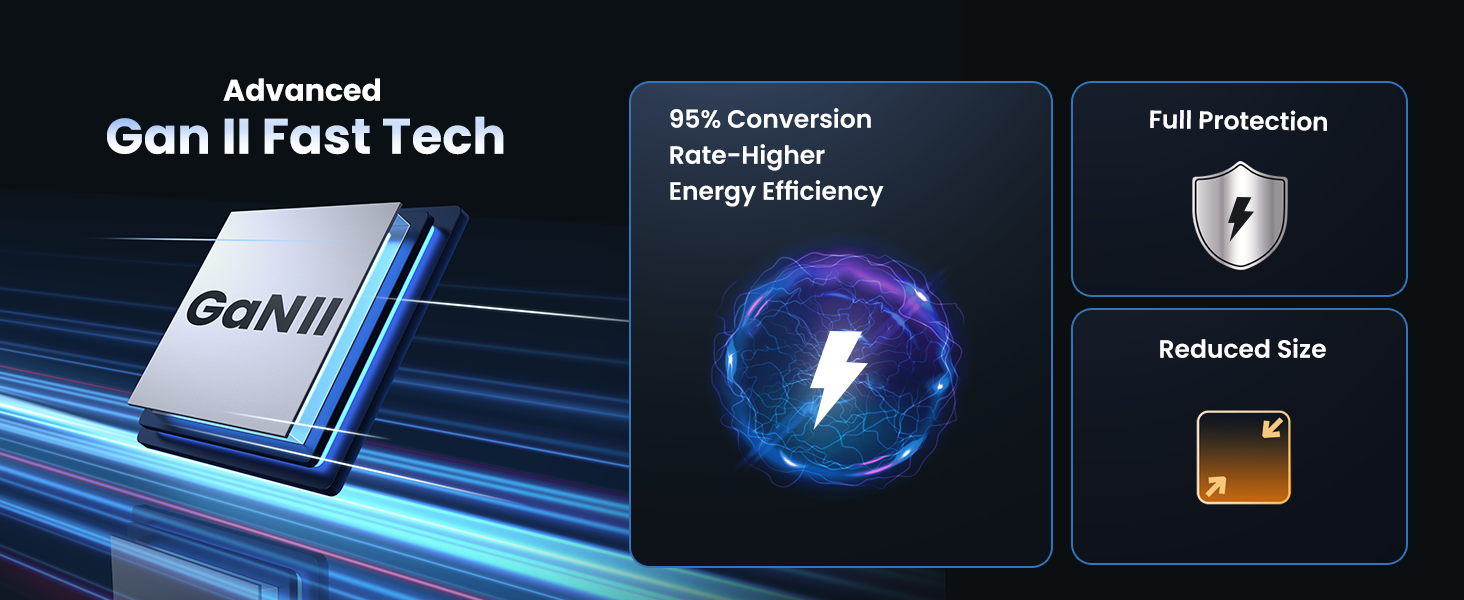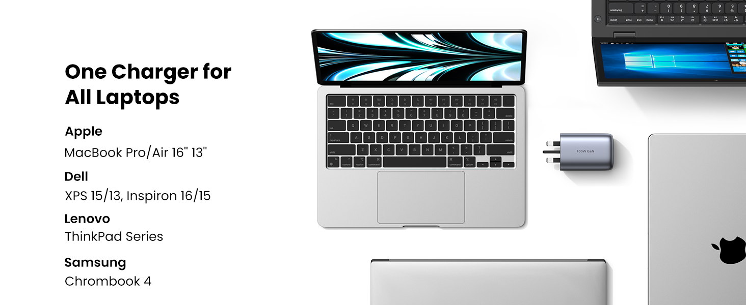 - 【GaNInfinity Chip, More Safer】The 100W laptop charger is equipped with the GaNInfinity Chip to protect your devices from short circuits, overvoltage, overheating, and overcurrent.