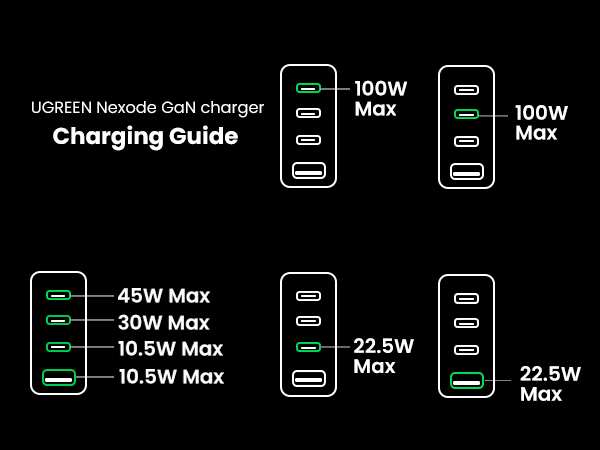 - 【What You Get】1 * 100W UGREEN Nexode 4-Port USB C Charger(No Cable), 1 * user manual, 24-month warranty, 24-hour customer service, lifetime technical support.