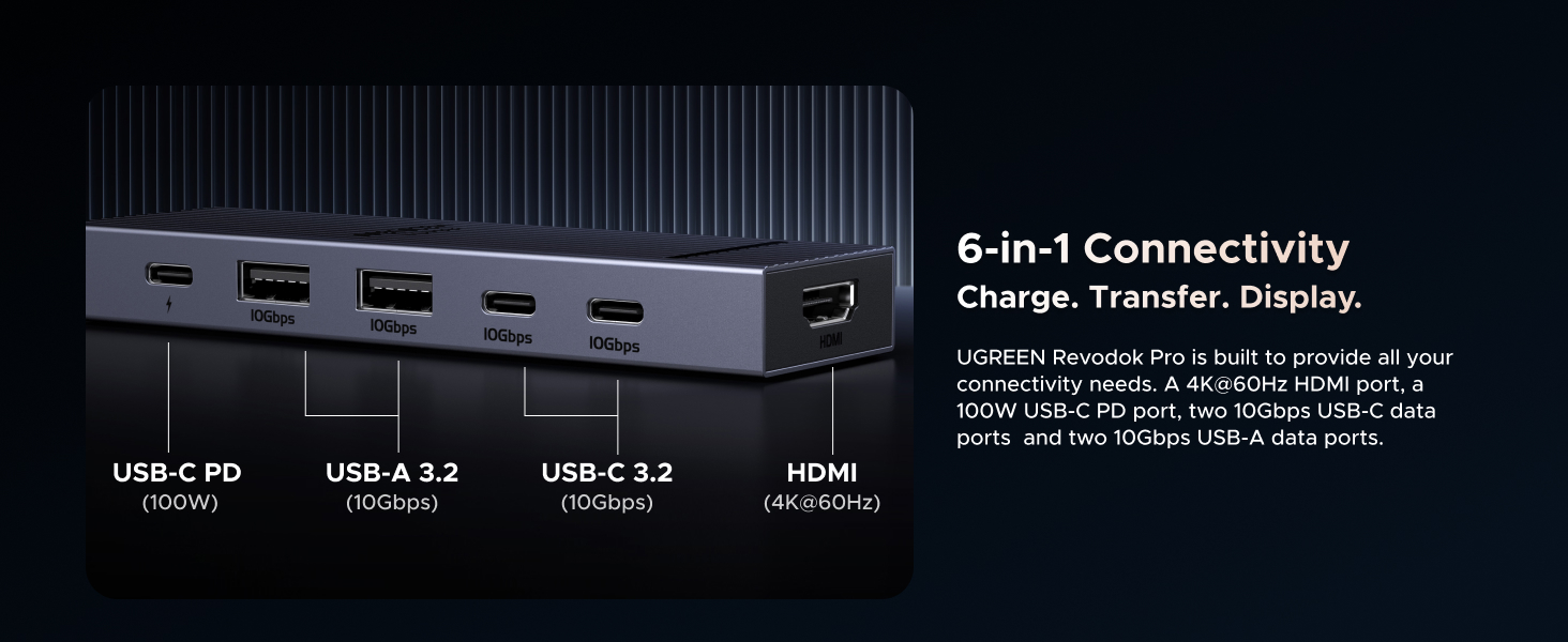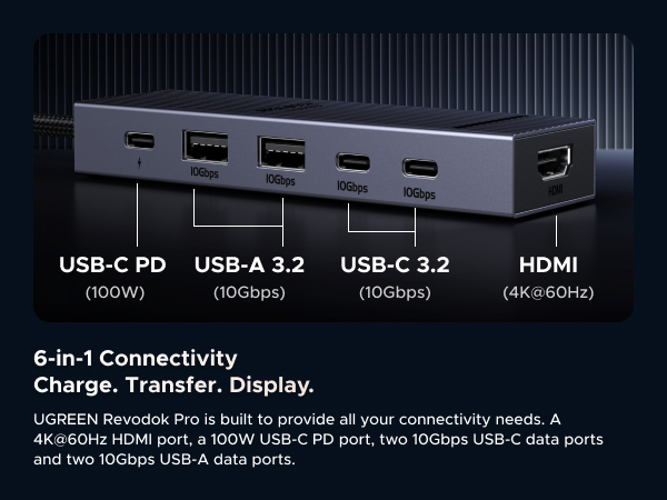 - 【6-in-1 10Gbps USB C Hub】Inspire more potential of your laptop’s USB-C port with two 10 Gbps USB-C 3.2 Gen 2 port, two 10 Gbps USB-A 3.2 Gen 2 ports, 4K 60Hz HDMI and 100W Power Delivery.