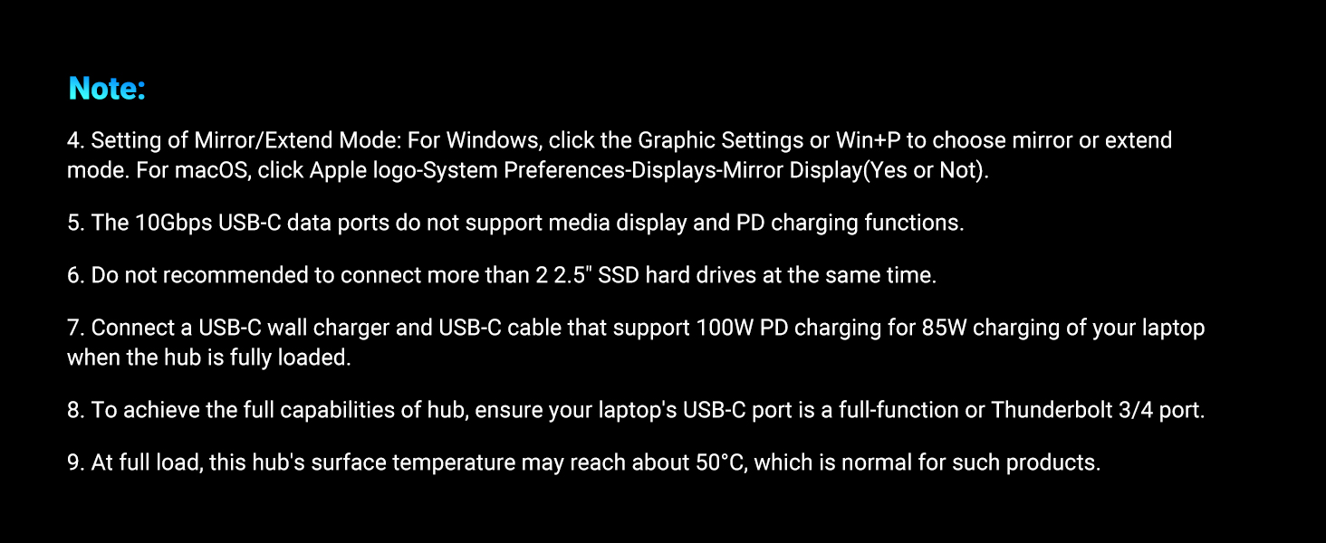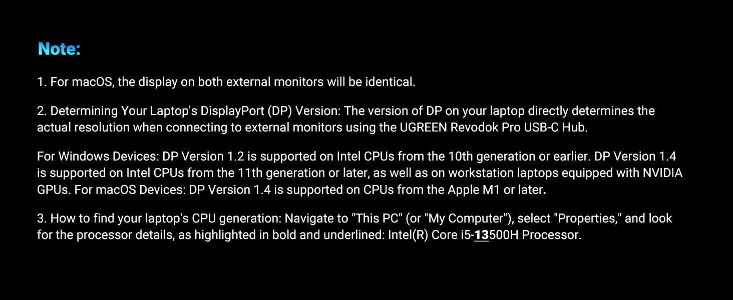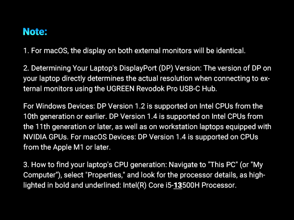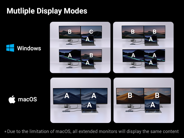 - 【Dual 4K@60Hz HDMI Display】Enjoy seamless multitasking and creative workflows with dual 4K screen that deliver vibrant and crisp at a consistent 60Hz. Please note that due to MacOS limitations, all extended monitors will display the same content when connecting MacBooks.
