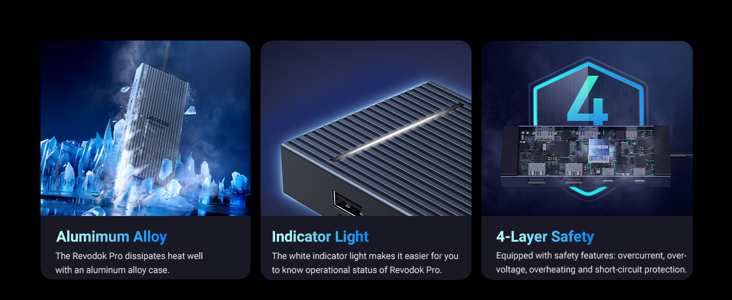 - 【Safe and Secure】UGREEN's exclusive aluminum alloy design and 4-layer safety features deliver comprehensive safety. And the USB C Dock is compatible with almost USB-C laptops such as MacBook Pro/Air, Dell Latitude, ThinkPad, ZenBook, Chromebook, and Surface.