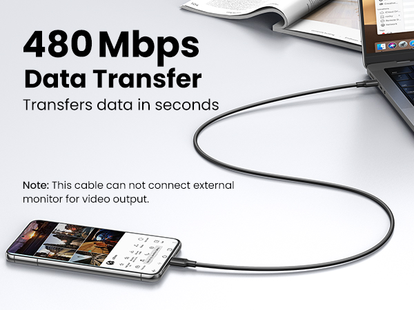 • 【Fast Data Transfers】: The USB C Cable provides transfer speeds up to 480Mbps (USB 2.0). Move 1GB of movies, music, documents, or entire photo libraries in less than a minute. 【Note: Video output and monitor extension are not supported.】