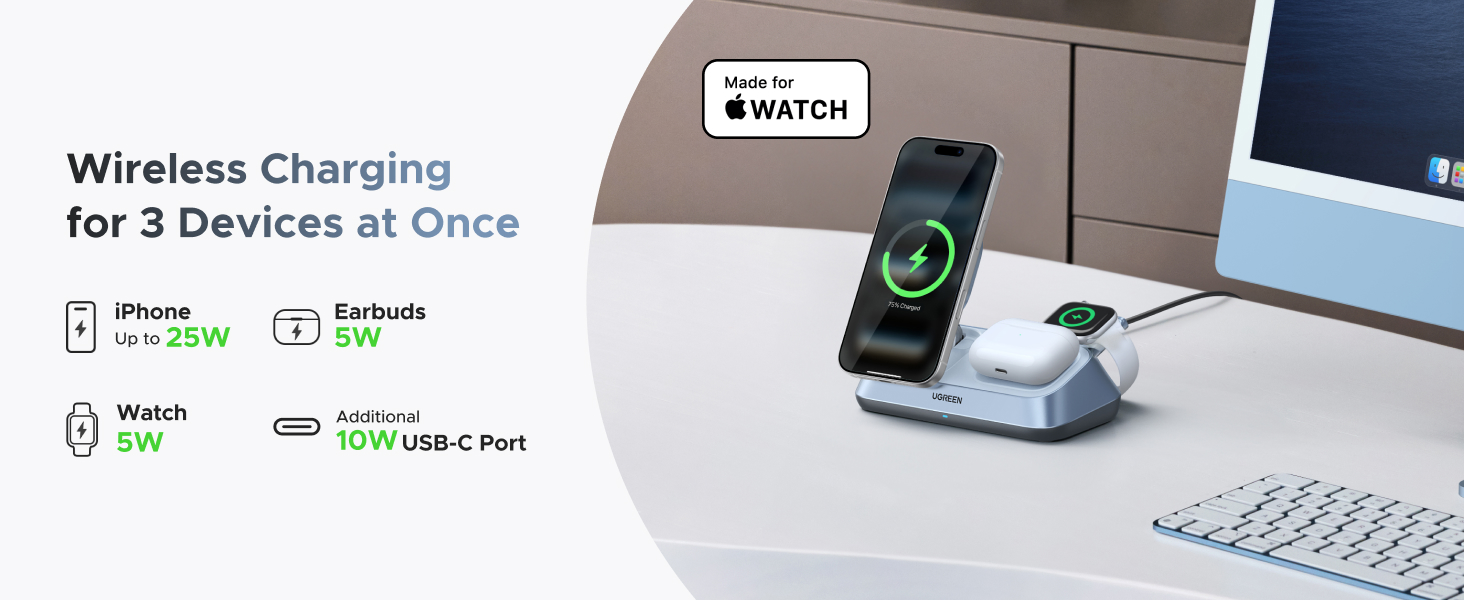 UGREEN MagFlow 3-in-1 Magnetic Wireless Desktop Charger 25W