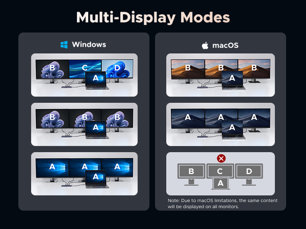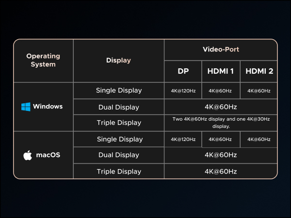 • 【Triple 4K Resolution Docking Station】 With 2 HDMI and 1 DP port, this docking station supports single-screen 4K 144Hz, dual-screen 4K 60Hz, and triple-screen 4K 30Hz ultra-clear resolution for enhanced work and entertainment.