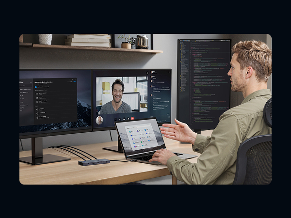 • 【Ultra-Fast Data Transfer】 This docking station delivers 10G data transfer speed via USB C, and the USB A ports allow you to connect Microphone/Keyboard/U disk for more efficient office work and smooth operation.