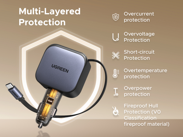 - 【All-Around Protection, Safe and Reliable】The iPhone 16 Pro Max car charger shell is made of fire-proof PC material, which effectively eliminates the potential safety hazards caused by high temperatures. Multiple safety certifications have certified the UGREEN PD 90W car charger, which protects your devices against short-circuiting, overheating, overcurrent, and overcharging.