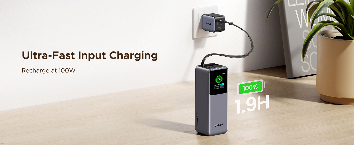 - 100W Fast Charging: Fully Recharged in Just 1.9 Hours. With maximum 100W input, this power bank refuels from empty in under 2 hours—perfect for quick top-ups between flights or overnight hotel stays. No downtime, no stress.