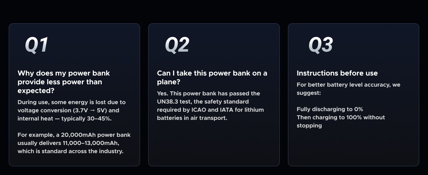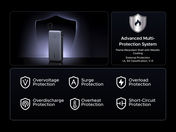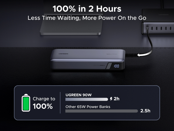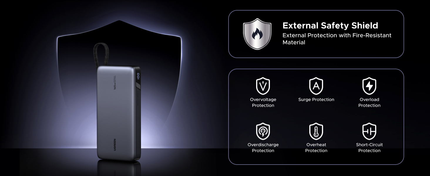 - Safe Charging & Digital Display: UGREEN fast charging power bank is built with over-voltage, over-current, short-circuit, and over-temperature protection for worry-free use. The LED screen clearly shows the remaining battery level