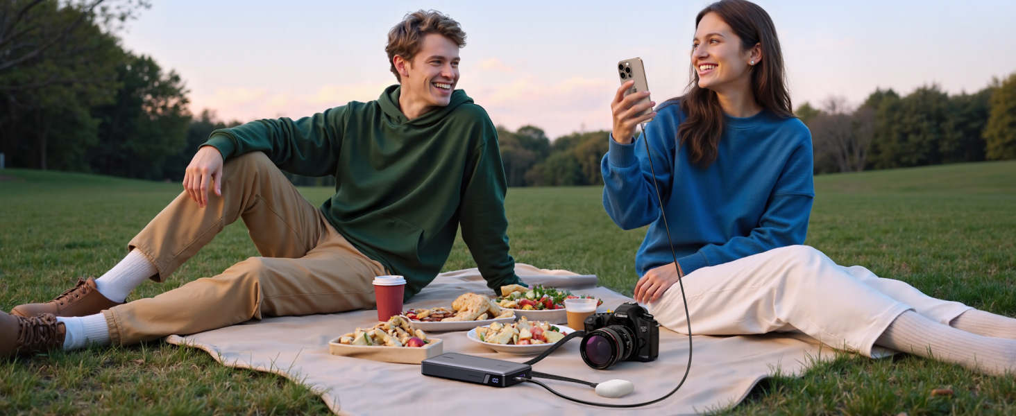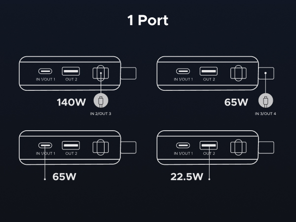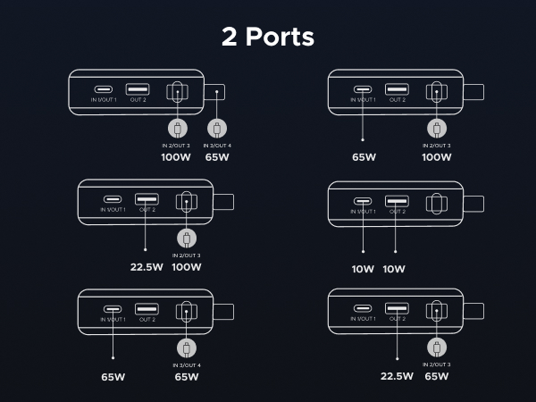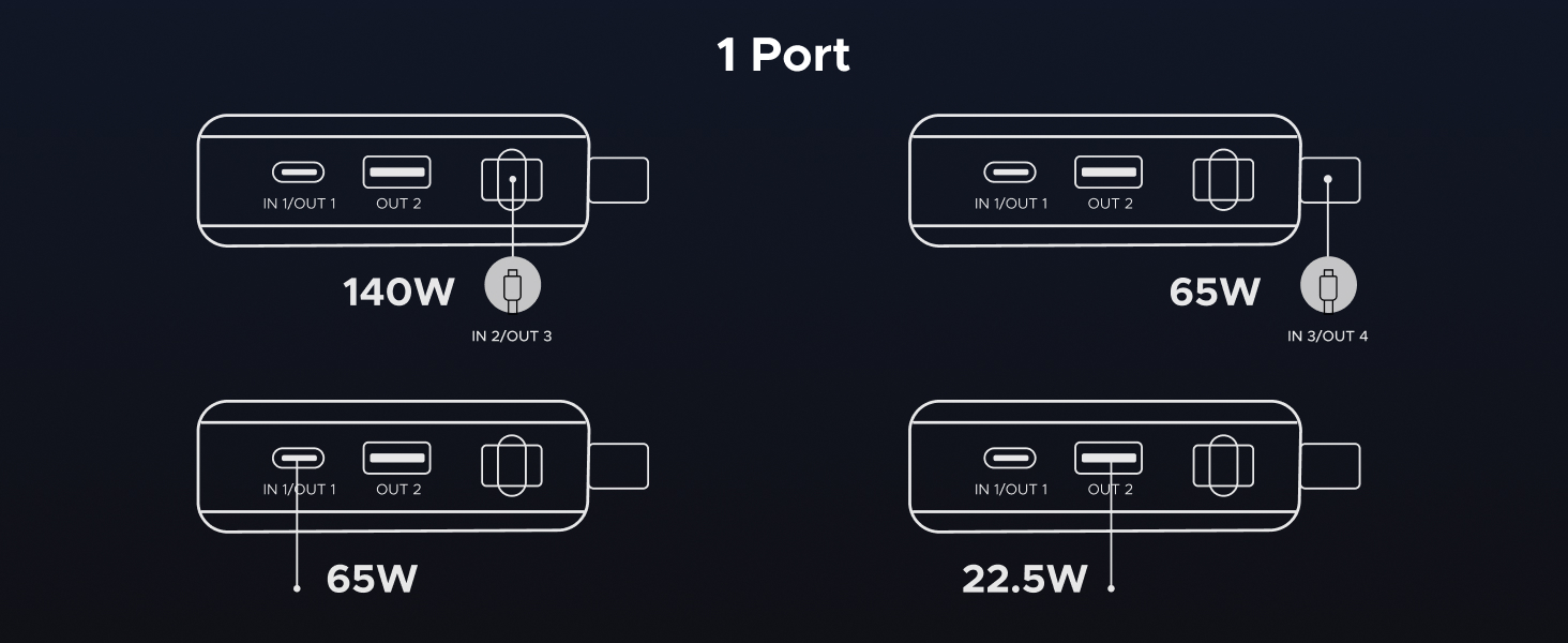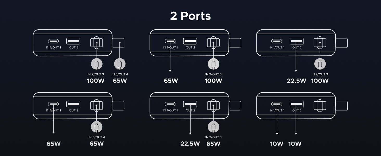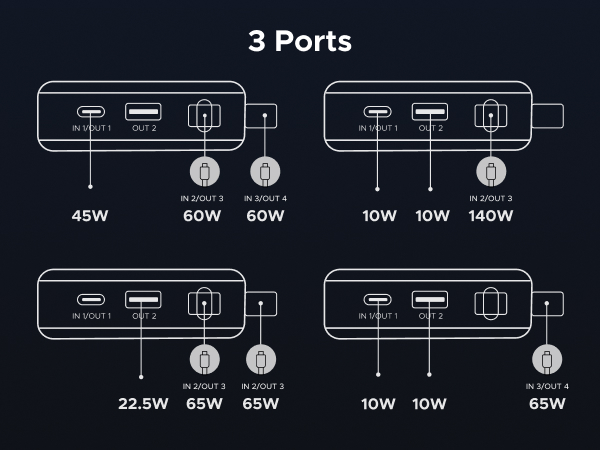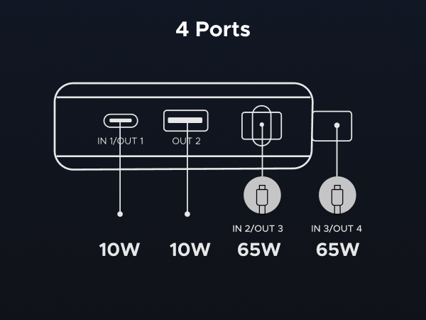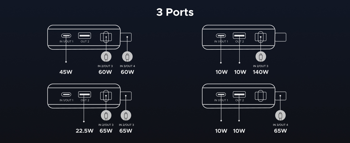 - 165W High-Speed Charging with 4 Ports: This power bank delivers a total output of 165W, featuring two built-in USB-C cables and two additional ports (USB-C + USB-A). Charge up to 4 devices at the same time, making it the perfect all-in-one power station