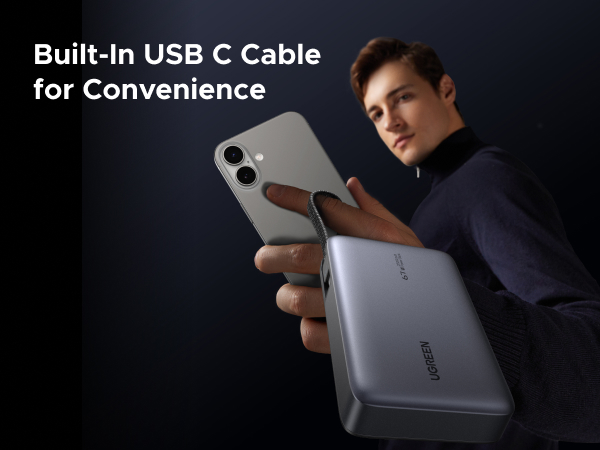 - Built-in Braided 67W USB-C Cable: Built-in 67w USB-C cable power bank, supports both input(65W) and output(67W) ; no need to carry or forget extra cables, keep your bag tidy and organized during business trips, commuting and traveling.