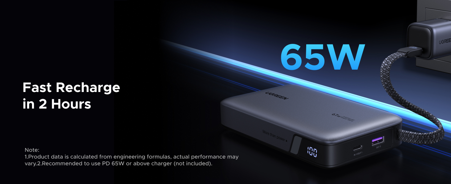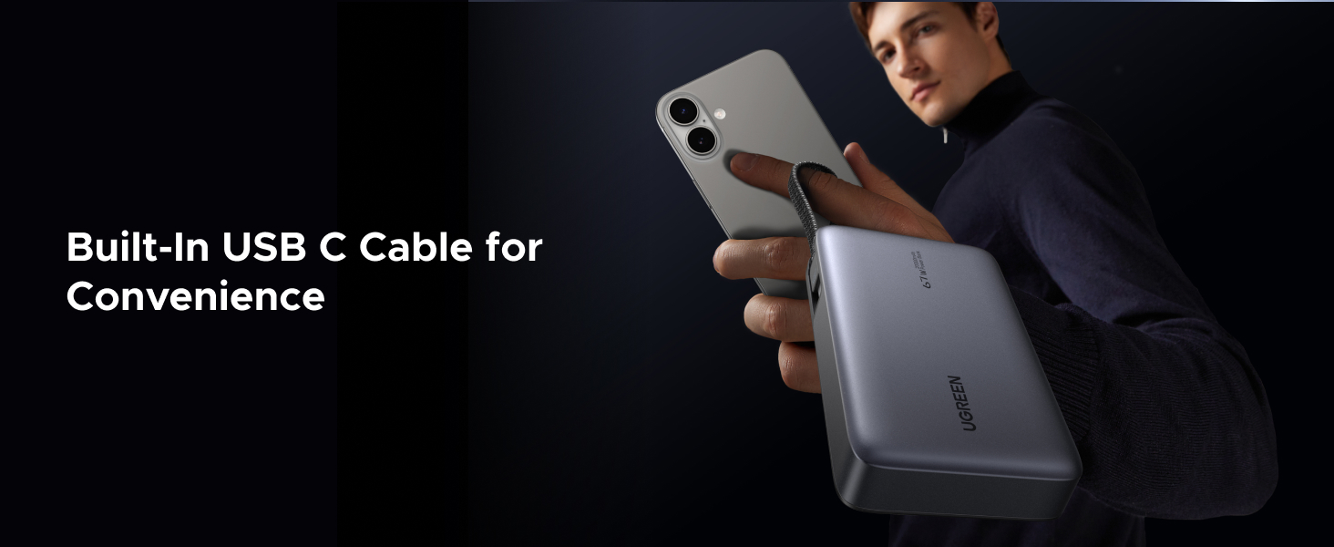 - What You Get: 1*UGREEN 67W Power Bank 20000mAh Built-in USB-C cable, 1* 240W USB C Cable 0.5M, 1*user manual, 24-month warranty, 24-hour customer service, lifetime technical support.