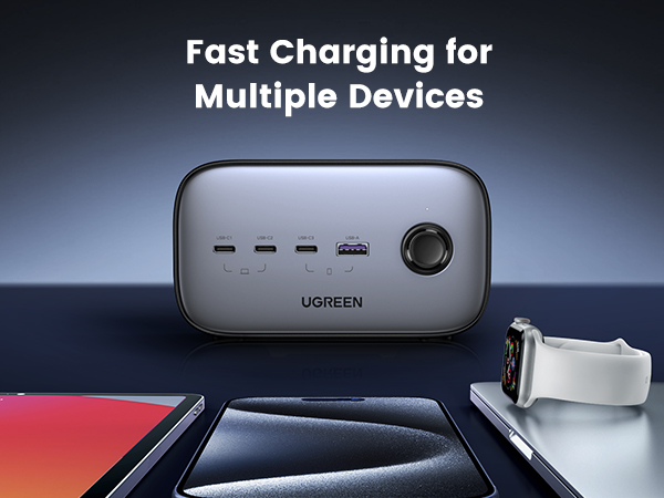 - 【Advanced GaN Tech, High Charge Efficiency】: Powered by GaN III chip, Ugreen DigiNest USB C Charging Station offers up to 95% conversion rate in a more compact size and better heat dissipation with Thermal Guard technology.