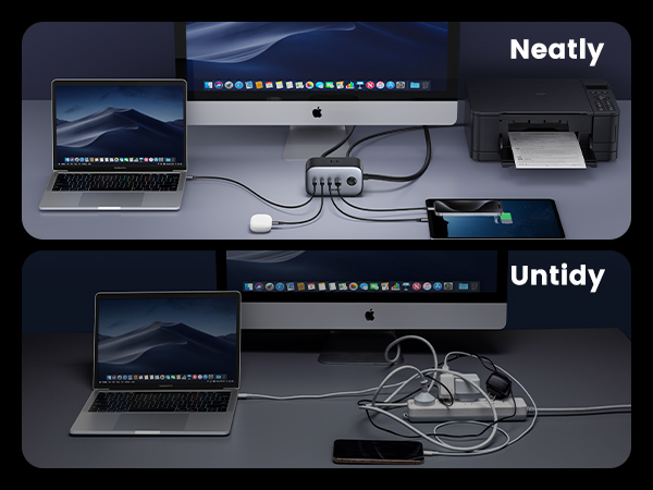 - 【Protable Size, Save Space】: With the special UGREEN DigiNest Cube shape design, the 65W USB charging station effectively gets your devices neatly organized, and organizes your charger cable jungle, saving space and providing a tidier workspace.