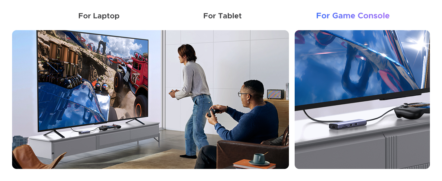 • 【4K 60Hz Visual Feast】 Mirror or Extend your screen via the HDMI port and directly stream a clear video image and authentic audio up to 4K@60Hz to external display without motion blur and noise. Perfect for presentations, games, videos. Note:4K@60Hz is only available for devices with DP1.4 Alt Mode enabled.