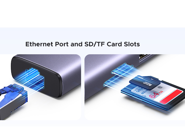 • 【7-in-1 USB C Hub 】1*4K@60Hz HDMI Port, 1*PD 100W Charging Port, 1*Gigabit Ethernet Port, 2*USB 3.0 Ports, SD and TF card readers. All ports can work simultaneously well!
