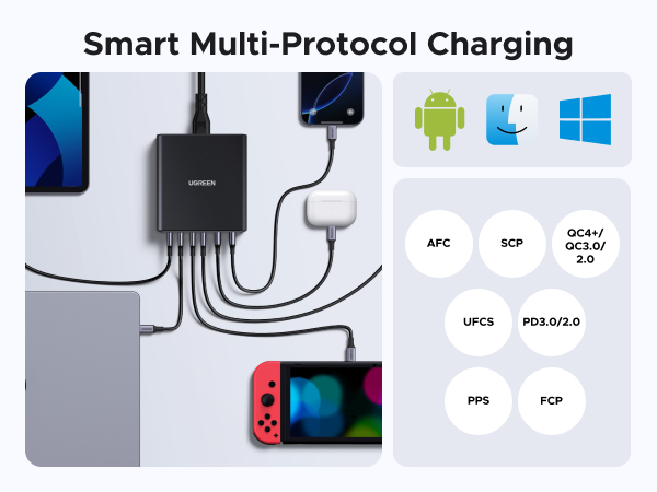 - Power for Over 1000 Devices: Our 100W charger supports "Super Fast Charging 2.0" and is compatible with a wide range of devices; including MacBook series, XPS series, HP laptops, ThinkPads, iPhone 17-8 series, Galaxy S/A series, Switch, and more.