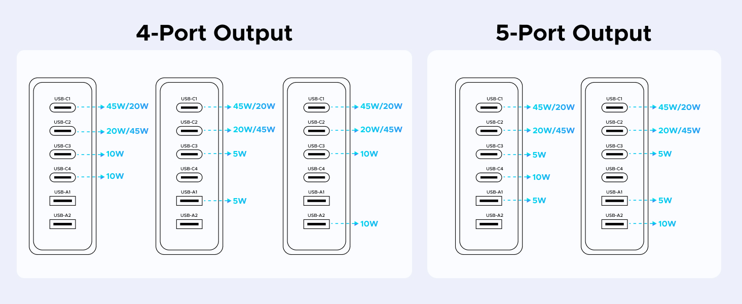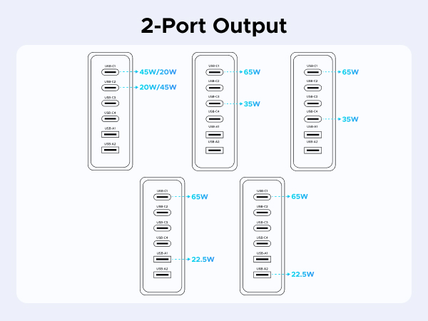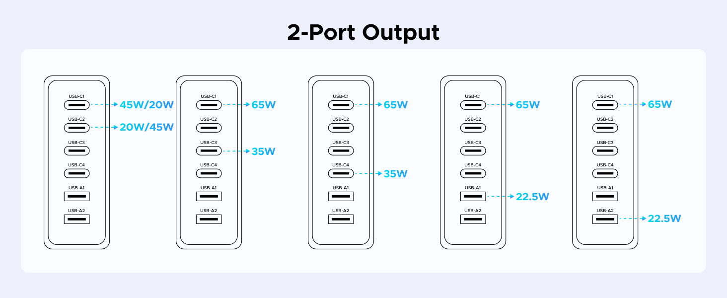 - 65W Full Power: Delivering rapid 65W output across all devices, the USB-C1/USB-C2 ports support a wide range of fast-charging protocols(PD/PPS/QC/AFC, etc) ; Charge your MacBook, iPad, iPhone, Galaxy, or Pixel quickly and safely; your MacBook Air goes from 0% to 51% in just 30 minutes, for dependable power when you need it most