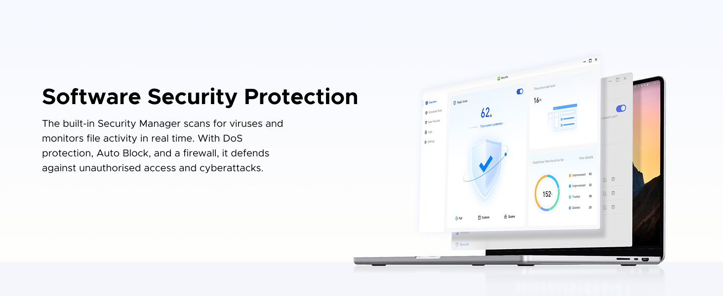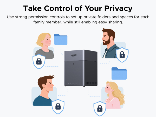 - Your Data in Your Hands: Store your data securely locally. Advanced encryption, a firewall, and two-factor authentication reliably protect your files from unauthorized access—even UGREEN has no access to your private data.