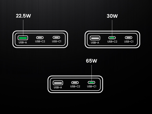 - 65W High-Speed Charging: Connect a single USB-C device to get a 65W max charge, which charges your MacBook Pro 13" M2 from 0 to 51% in 30 minutes, and charge the latest Galaxy S24 at full speed