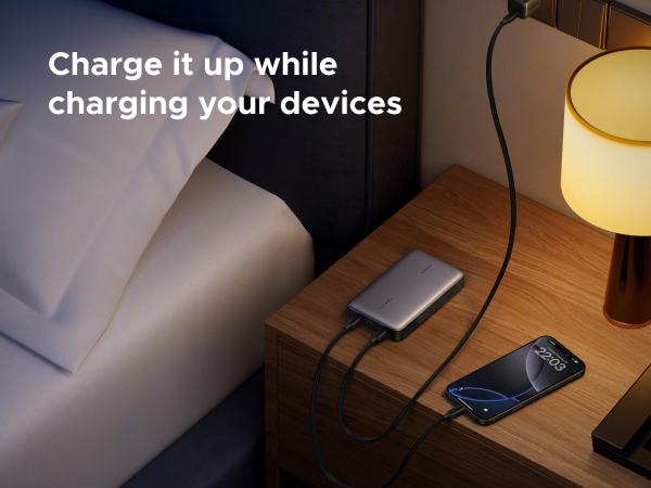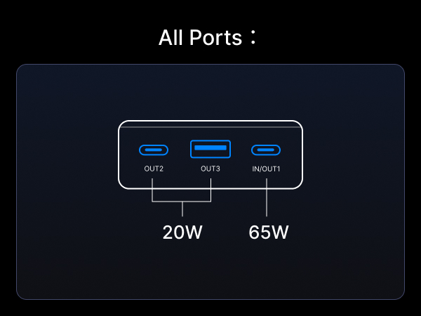 - 65W Highspeed Recharge: The USB C1 port can not only fast charge your devices but also provide 65W efficient charging for the portable charger itself. (65W wall charger not included) A full charge takes only 1.6 hours