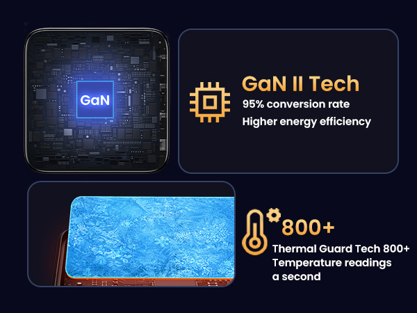 - Portable, compact design: A GaN chip combined with foldable plug design makes this 100W charger small enough to fit in the palm of your hand without a sacrifice in quality or power, very suitable for long distance travel or business trips