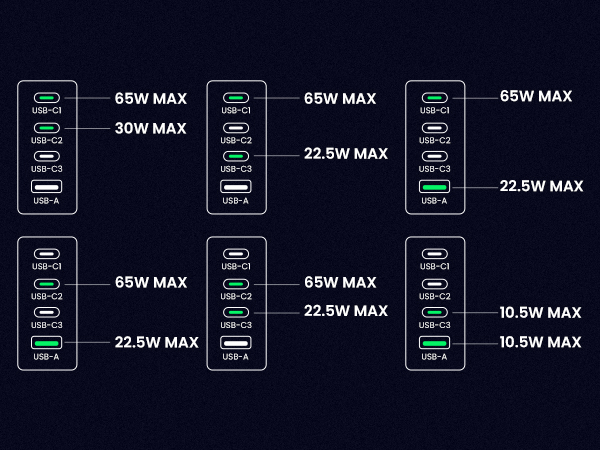 - Power 4 Devices at Once: 3 USB C ports and 1 USB A port provide 100W to phones, tablets, laptops, and more, all at the same time fast charging