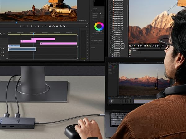 - Lightning Fast Transfer Speeds: This dual HDMI USB-C hub docking station comes with two USB A&C ports for connecting keyboards, mice, and transferring data in USB 3.2. Note: The USB A and C ports do not provide charging capabilities or support audio transfer