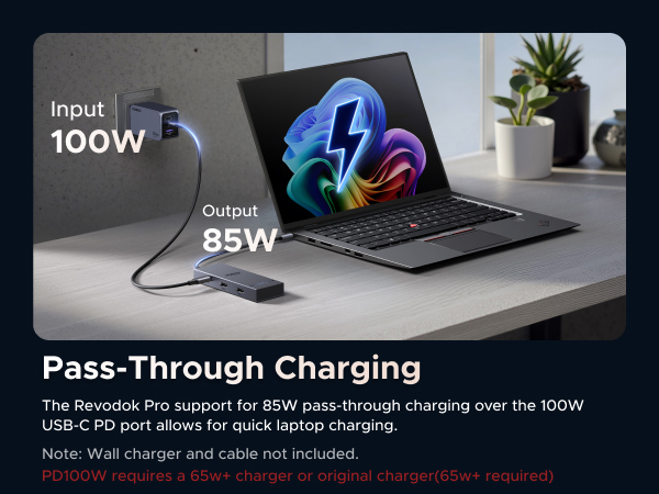- PD100W USB C Adapter: The PD 100W Fast Charging Docking Station boasts 100W, Please note that the charging cable and power adapter are not included. Additionally, the port only supports charging; it does not facilitate data transfer or video output
