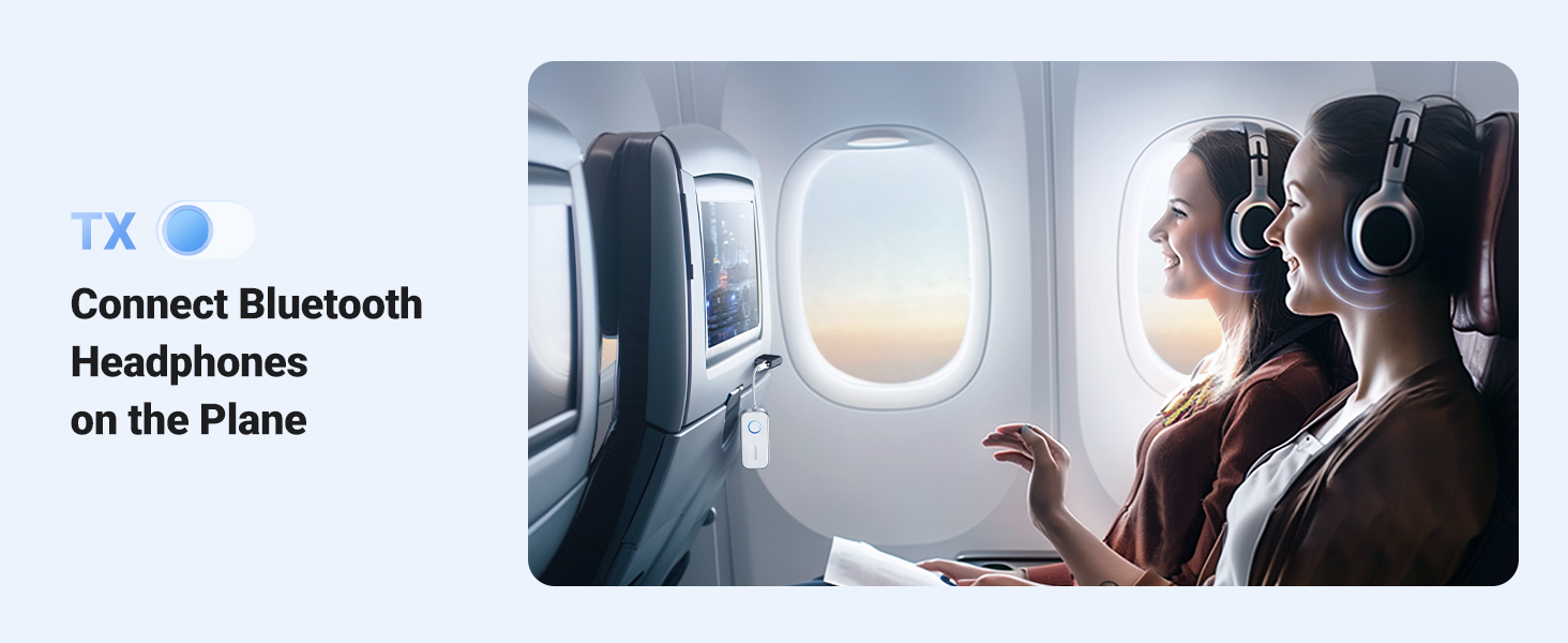 - 2 in 1 Bluetooth Adapter: Seamlessly switch between transmitting and receiving modes with this 2 in 1 Bluetooth 5.4 transmitter and Receiver. The TX mode is perfect for TV, airplane and other devices without Bluetooth function. In RX mode, you can connect it to your car audio systems, Bluetooth headphones or speakers to play music