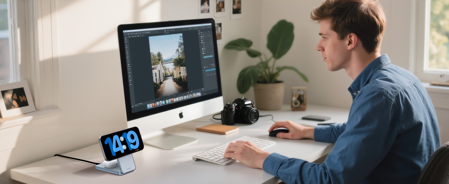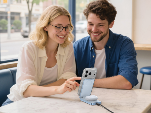 • 70° Adjustable Viewing Angle: Flexibly position your iPhone vertically or horizontally on the UGREEN MagFlow wireless charger iphone. Magnetic stability ensures seamless video calls, movie streaming, or scrolling during charging—ideal for multitasking