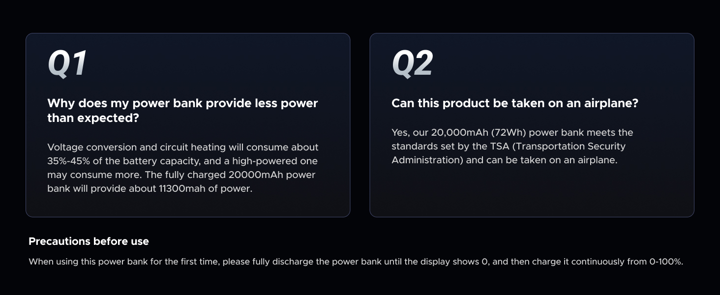 • 20000mAh Large Capacity: With 20000mAh high-capacity battery, portable charger power bank can charge iPhone 16 up to 4.2 times, Galaxy devices 3 times, iPad Pro 11 about 2 times, and MacBook Air 1.3 times. It is airline-approved and convenient for travel and daily use