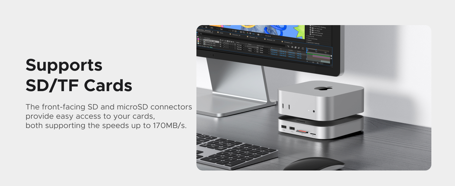 • SD/TF Card Reader: Import photos and videos directly from your SD or TF card at speeds of up to 170MB/s. Perfect for photographers and content creators who need fast access to large media files