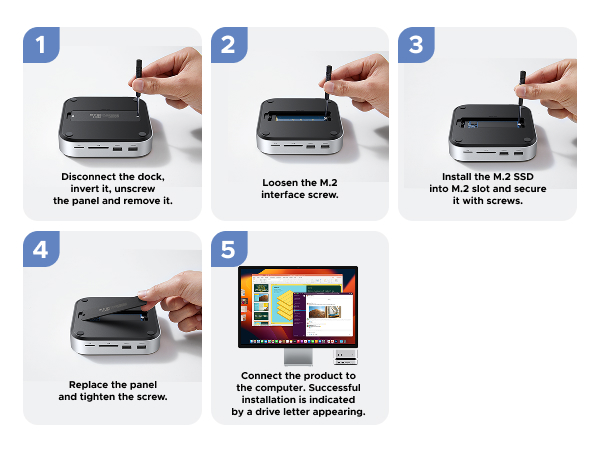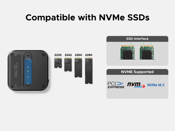 • Up to 8TB of Expandable Massive Storage: Unleash the potential of your Mac Mini M4 with up to 8TB of ultra-fast internal storage. The Mac mini M4 Pro docking station supports M.2 NVMe SSDs (2230/2242/2260/2280). Enjoy 10Gbps transfer speeds to easily handle large files, 4K editing, or backups while keeping your devices neat and organized. (SSD not included.)