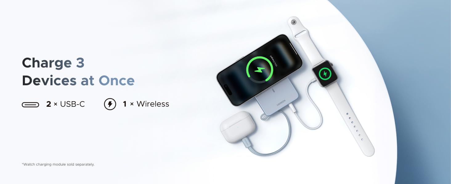 • Charge up to 3 Devices Simultaneously for Convenience on the Go: Using wireless + built-in cable usb-c port, magsafe wireless portable charger can simultaneously power up to 3 devices. It can be used with smartphones, headphones, and tablets, allowing you to charge other devices while the main unit is charging, eliminating the need to wait for charging time