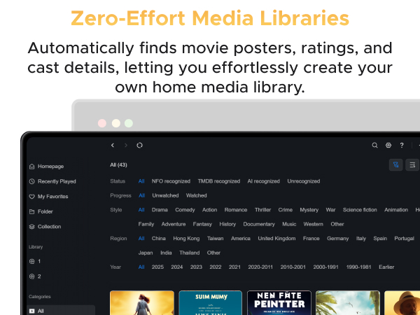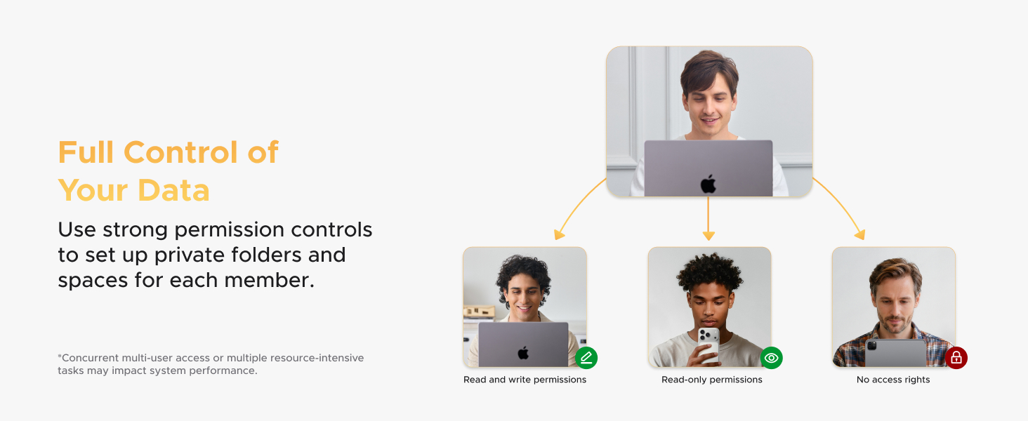 • AI Album Recognition & Classification: The 4 bay nas supports real-time photo backups and intelligent album management including semantic search, custom learning, recognition of people, object, pet, similar photo. Thus, you can classify and find your photos easily. What's more, it can also remove duplicate photos as desired. *Storage disks not included.