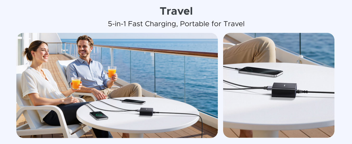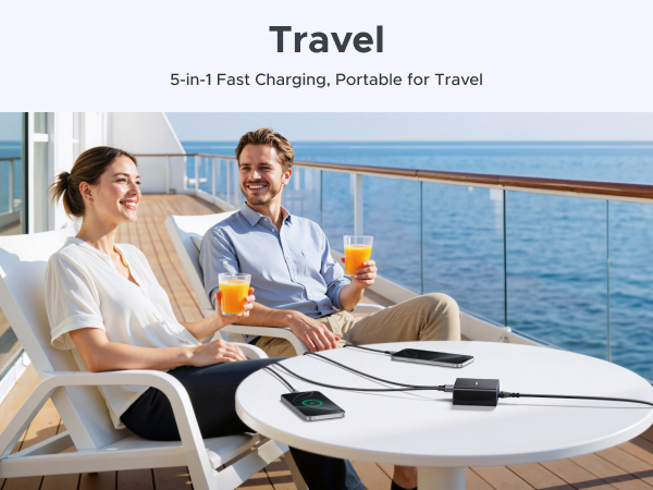 - 【5-Port 65W Hyper-Powered GaN Charging Station】Charge your device with the total 65W power! This premium GaN station 5 devices(laptops, tablets, phones...) simultaneously via 4*USB C and 1*USB A. Perfect for Middle Eastern homes/offices using multiple Apple and Android devices simultaneously.